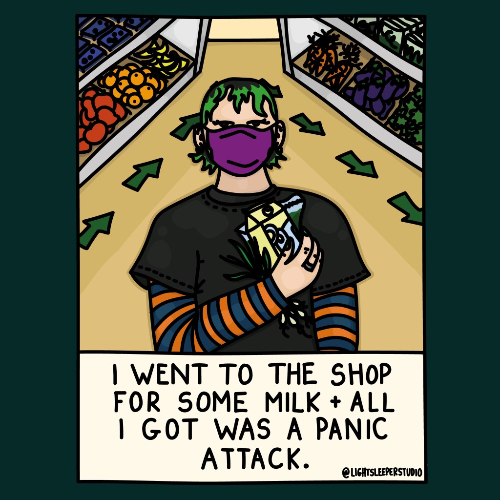 An illustration I made about having a panic attack in Tesco, back when I used to get panic attacks in Tesco.