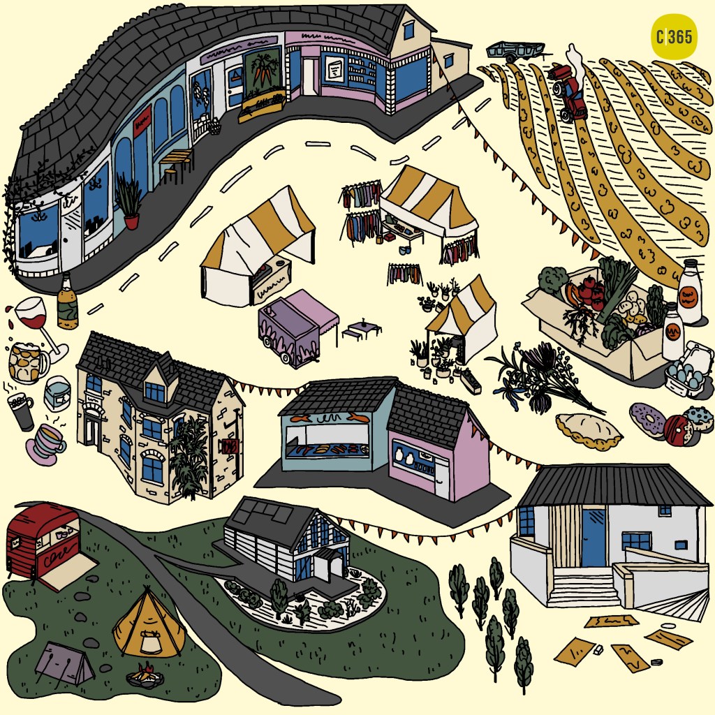 This Cornwall 365 commission celebrates the diversity of life and culture in Cornwall through a series of illustrated triptychs. The three pieces, Creative Cornwall, Rural Cornwall, and Sustainable and Independent Cornwall, highlight different facets of the Duchy.